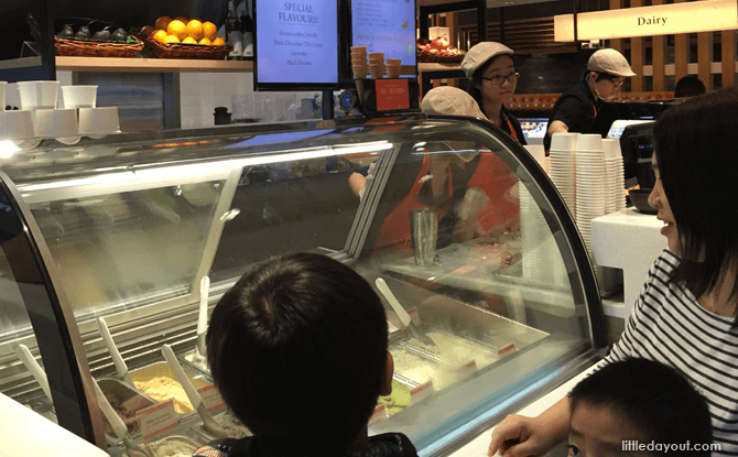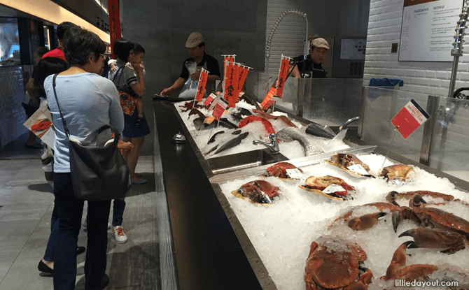 Most kids would see their food already cooked. Here at Emporium Shokuhin, you will find Singapore’s first live and chilled seafood market downtown with fresh catches from Japan, U.S.A., Australia and Europe. Here’s a chance to peek into the 22 tanks and discover crustaceans, fishes and shellfish alive. Compare the Alaskan king crabs with the Dungeness crabs, spot the abalones, and seasonal items including hirame (flounder), kegani (hairy crabs) and a variety of oysters from places such as France and Scotland! Cooks will appreciate the recipe cards available next to the Boston lobsters and kinki fish!