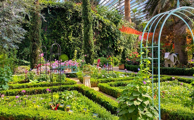 Once inside the Flower Dome, visitors can admire the European-themed landscape with its sunflowers, foxgloves, larkspurs, kangaroo paw, coleus and pelargoniums.