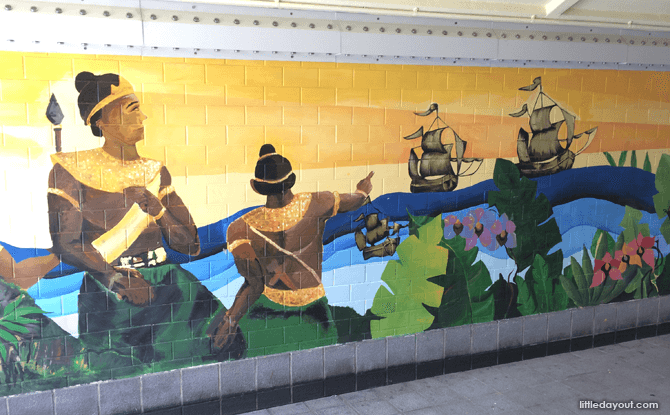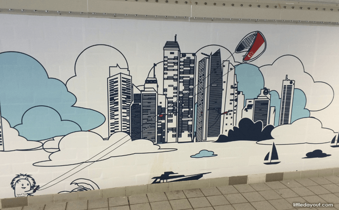 At the Coleman Bridge underpass, scenes depicted range from Sang Nila Utama to Raffles’ landing to old-style heritage playgrounds. These colourful works of art are the work of Social Creatives, a non-profit arts enterprise that seeks to promote art with a purpose.