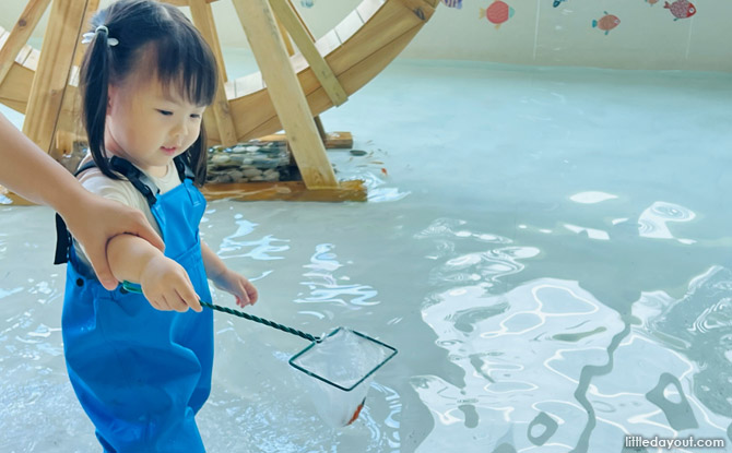 Little Pea did fall into the water and got wet, but it was an easy clean up with an on-site wash basin and towels provided. Parents are encouraged to bring an extra set of clothes.