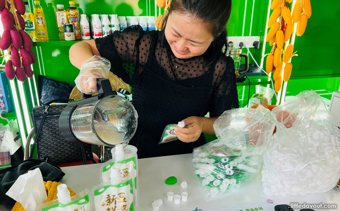 After finishing all the farming tasks, Jennifer (Founder of F3) rewarded the little one with freshly made soybean milk and crispy popcorn which the little one was grateful for, knowing she “worked for it”.