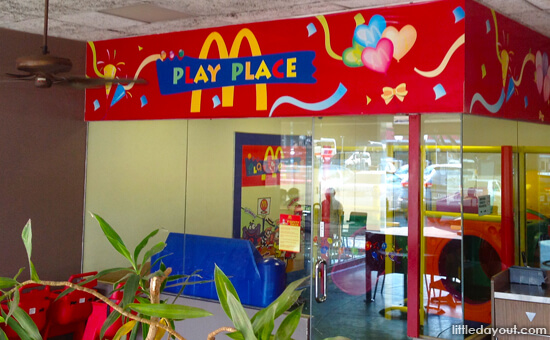 Various McDonald’s outlets have “Play Places” for kids. This one at Kallang has an indoor Play Place with a playscape just for kids.