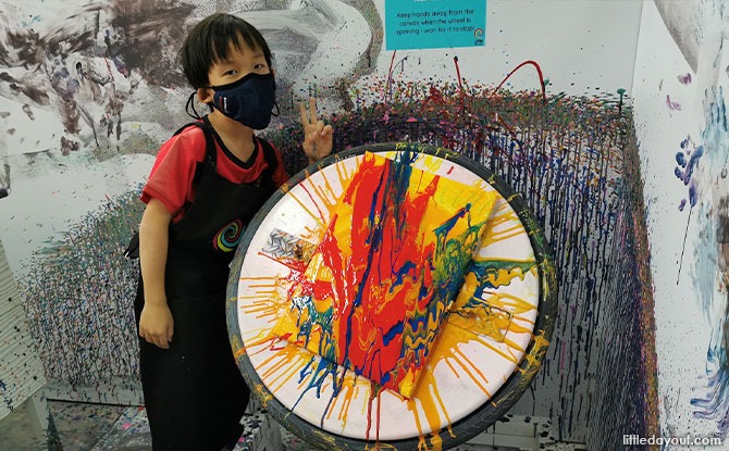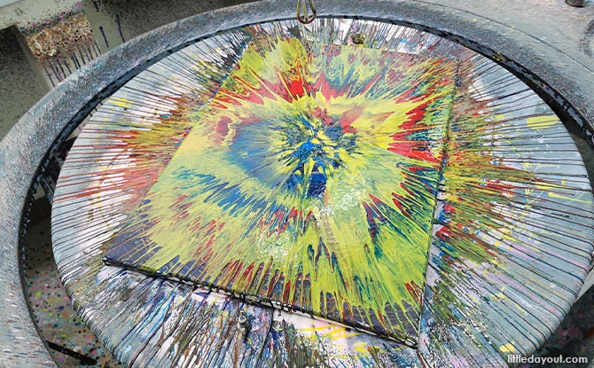 Since this was one of the few places to make a legitimate mess, anyone can go all out creating their artpiece. I left it largely to my master painter son to create his artpieces. My role was merely to help control the speed of the spinning, do touch-ups, mix paint and be the “technical” assistant.