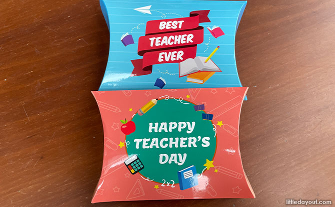 These pillow boxes come with a space at the back to write a heartfelt message of thanks to the teacher.