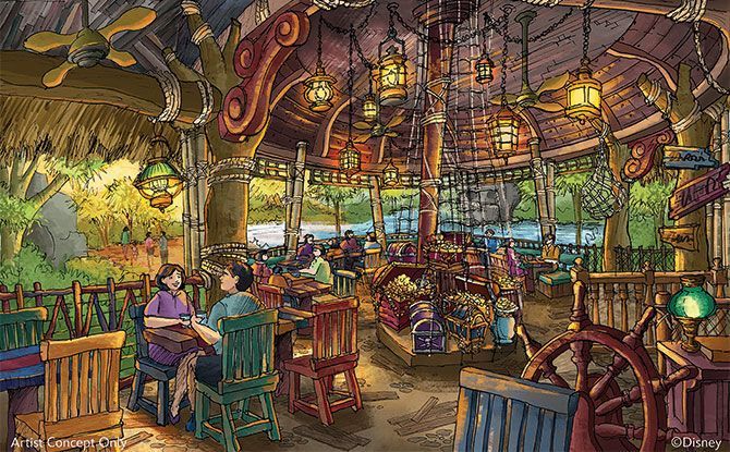 Hungry? Visitors can also stop by for a meal at Lookout Cookout, a restaurant created by the Lost Kids, brimming with playfulness and made from parts of a shipwreck that had washed ashore in Never Land.