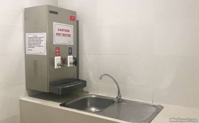 The Far East Plaza nursing room is equipped with the bare essentials – a diaper changing station, hot water dispenser, a sink and a bench. Recommended only for quick and emergency nappy changes.