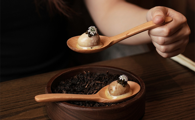 Look forward to the newly launched snack, Tea Leaf Quail Egg – a triple-egg delight in one bite. At its heart, quail eggs are infused with the subtle, smoky notes of lapsang souchong tea, resulting in a nuanced flavor profile. These delicate eggs are then dressed on a bed of century egg emulsion, offering a rich, umami depth. An exclusive release features Mala Beef Knuckle, delivering bold, complex flavors balanced by the sweet, luxurious creaminess of an oyster and chive emulsion.
