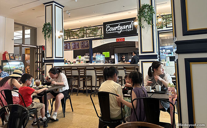 Courtyard Cafe specialises in Straits Asian food. It also serves local coffee and traditional kuehs and cakes. You can expect a main dish to range between $13 to $20 plus.