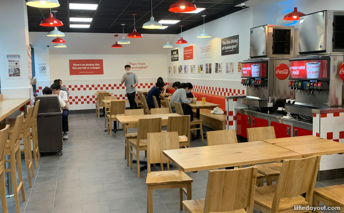 Five Guys NEX can be accessed from the exterior of the mall. This branch’s indoor dining space is in fact larger than that of its first location at Plaza Singapura.