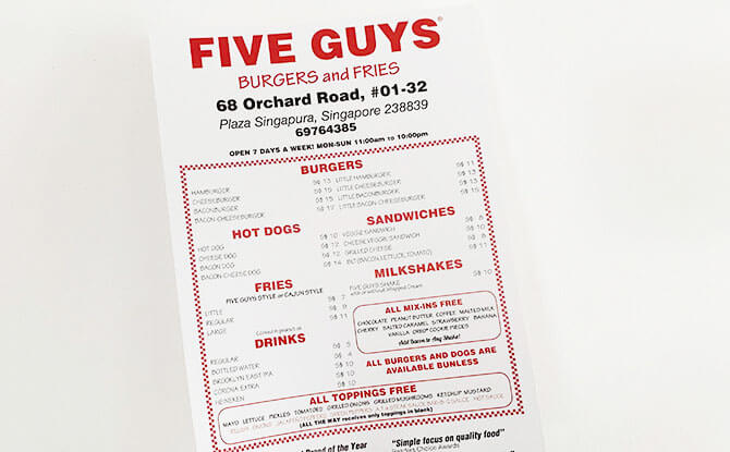 Five Guys Singapore Menu