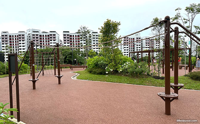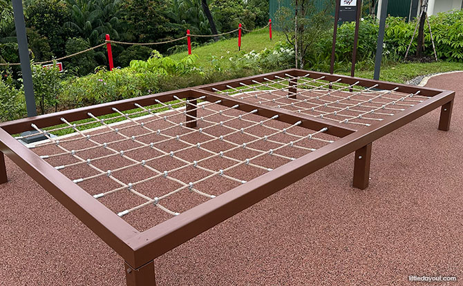 These obstacles will work out different muscle groups as you tackle each of them. Here is a look at the various obstacles at Bukit Canberra’s Forest Gym.