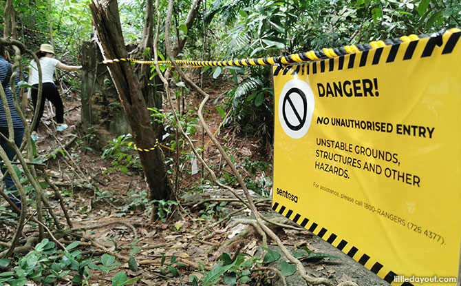 Folks from Sentosa Development Corporation have installed ropes along the hill to ensure participants can hold them while trekking up and downhill. Danger signs have also been included for the tour to be conducted in the safest manner with a route to be followed.