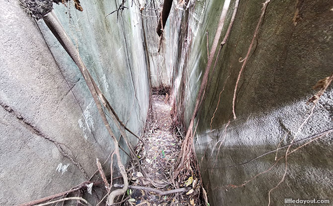The battery observation post, clearly battered from the forces of nature and time, overlooks the Eastern coast of Singapore. It has largely been left alone except for a short duration when SAF held military exercises as the walls of the battery observation post suggest.