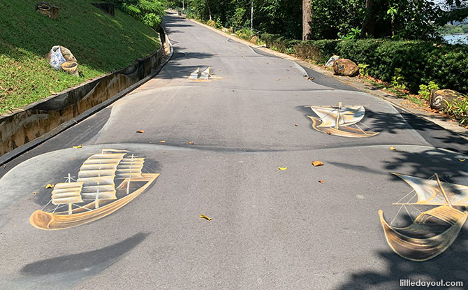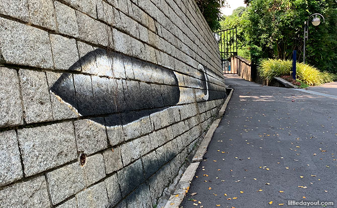 These are a set of murals painted by Singaporean artist Yip Yew Chong on to the sides and road at Fort Siloso.
