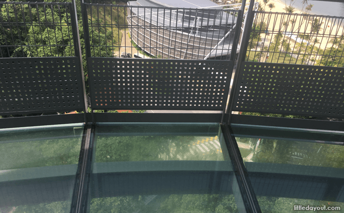 Stepping out of the elevator onto the Skywalk’s Viewing Deck, you get a magnificent view of the surrounding area. This view extends southwards out to sea and to the Southern Islands off Singapore. A signboard helps you to identify the various islands including Sisters’ Island and Pulau Tekukor.