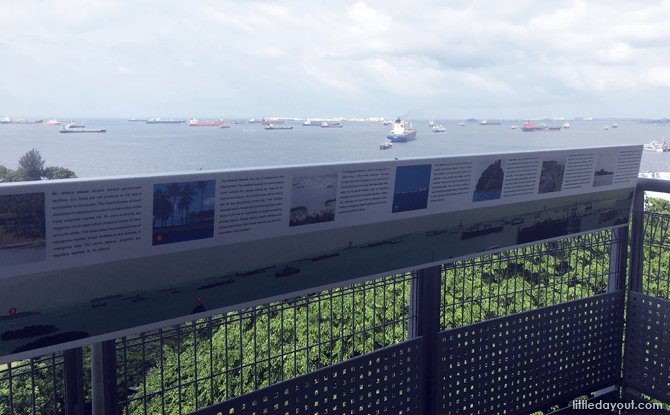 From the Viewing Platform, it is a 181-metre walk along the bridge to Fort Siloso. Along the way, there are signboards that provide an introduction to the area’s past and the landmarks that can be seen in the distance.