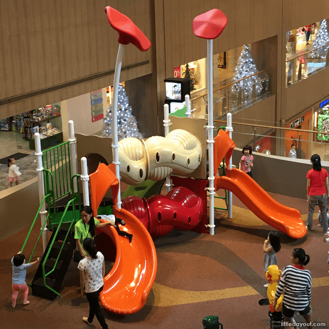 At the Marina Square Playground, kids get to play on a space-themed playground with a climbing structure, UFO and space-shuttle themed kiddy rides. The playground is found close to Mothercare on level three.