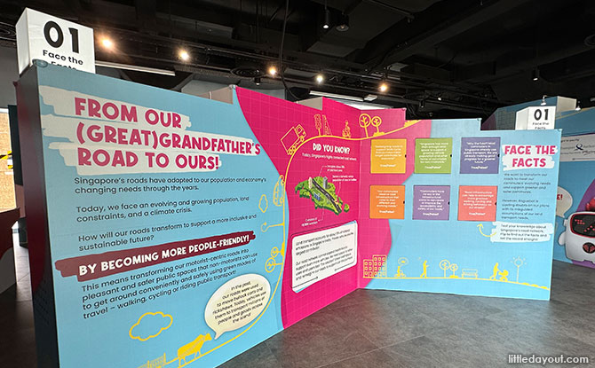The Friendlier Roads, Happier Commutes exhibition is divided into five sections with interactive elements for kids and families to learn more about the Land Transport Authority’s effort to made the roads safer for everyone.