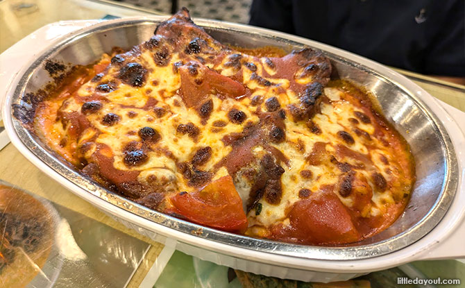 We also ordered Baked Pork Chop Rice ($12) for more protein. Served in a baking dish, the portion was generous and looked just the part of a baked cheesy rice dish. A huge slab of pork chop with baked cheese and tomatos, gravy and rice was a wonderfully tasty treat. We deemed it even better than the Charsiew and Scrambled Egg rice.