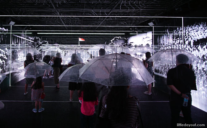 Time Traveller, the indoor, multisensory presentation of From Singapore To Singaporean: The Bicentennial Experience takes place inside Fort Canning Centre.