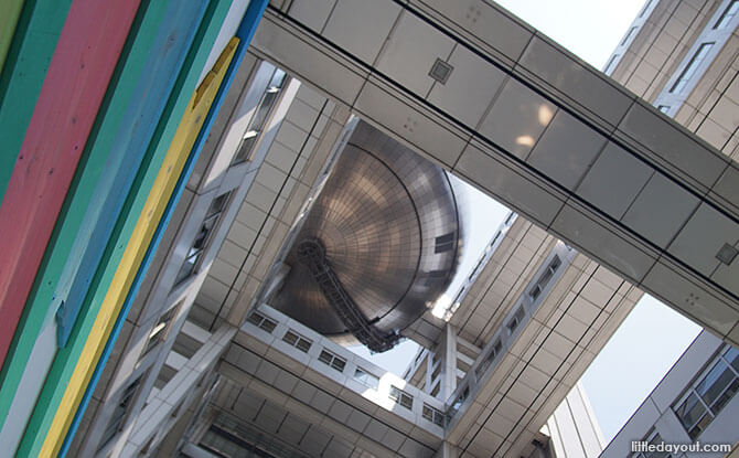 The distinctive building is home to the Fuji Television network. For those who are curious as to what lurks inside the big sphere, it is an observation deck and open to the public!