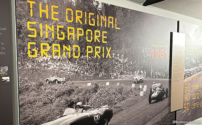 The first section of the F1 Grand Prix exhibition at Dempsey takes a look back at the history of the Singapore GP.