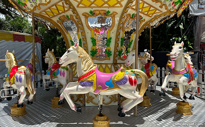 See if you can spot Ang Ku Kueh Girl and her friends playing among the coconut trees at The Coconut Alley.