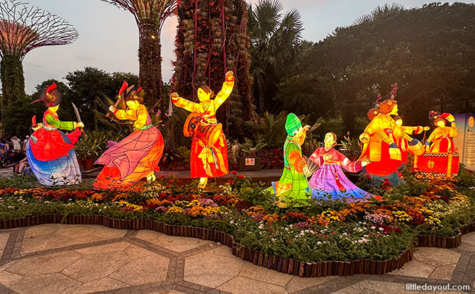 This lantern set at Supertree Grove brings together two mythical creatures – the Merlion and Haetae. The Haetae is a a mythical guardian in Korean folklore that embodies justice and fairness.