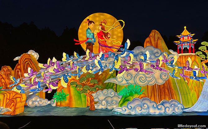 This lantern set marks the 35th anniversary of diplomatic relations between Singapore and China. The display was inspired by the classic Chinese tale Zhuangzi’s Dream of the Butterfly.