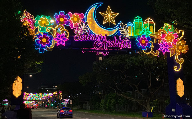 The main highlights of the Geylang Serai Hari Raya Light Up 2022 are the two main arches at Sims Avenue and Changi Road.