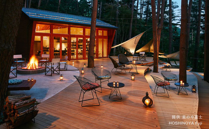 There is no sleeping under canvas at Hoshinoyo. Instead, you get minimalist cabins with views of magnificent Mount Fuji and beautiful Lake Kawaguchi. Hoshinoya Fuji provides a glamping experience for those who want greater emphasis on the glamorous end of the equation – the experience of staying in the woods with amenities you are used to in a resort.