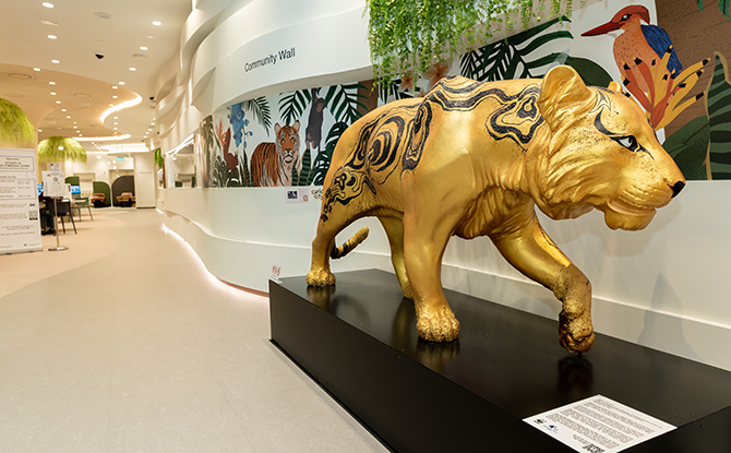 The golden tiger sculpture has also been incorporated into library’s Augmented Reality Learning Trail, which takes patrons on a journey to learn more about wildlife species and natural landscapes in Singapore.