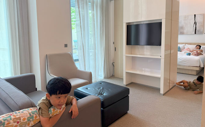 The Boays wasted no time playing giant snakes and ladders (which of course ended in the classic “he cheated!” squabble), but the suite was spacious enough for them to cool off before launching into their next round of giggles.