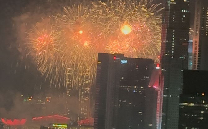In the evening, the lounge also served as our front row seats to the fireworks finale of the NDP rehearsal from that very spot. The Boays watched in quiet awe, commenting that “this view has all the fireworks, but none of the scary noise”—and yes, more cookies helped too.