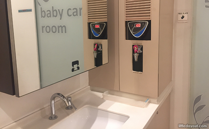 Walk into the baby care room at Great World City and you’ll be greeted by adorable pictures of babies. Clean, spacious and brightly-lit, the baby care room is furnished with three padded diaper changing stations, a sink and a hot and cold water dispenser. There is also a private, lockable breastfeeding room that houses an armchair, small coffee table and two electrical points – perfect for nursing mothers who are looking for a safe place of respite to breastfeed or express in comfortable privacy.