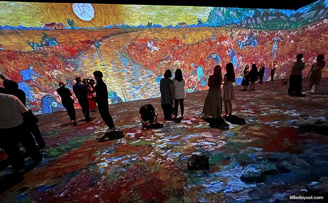 The tale of van Gogh’s life, influences, art and loves is traced dramatically through letters between him and his younger brother Theo who was an art dealer. Visitors follow the artist’s journey from his early works of peasants in 19th century Nuenen in Netherlands to “Red Vineyards at Arles” in France, Japanese styles in his “Almond Blossoms” and “The Sea at Les Saintes-Maries-de-la-Mer”, multiple self-portraits, to the luminous brilliance of “The Starry Night” and “Sunflowers”, exploring over 200 of his masterpieces coming alive across the immersive large-scale screens.
