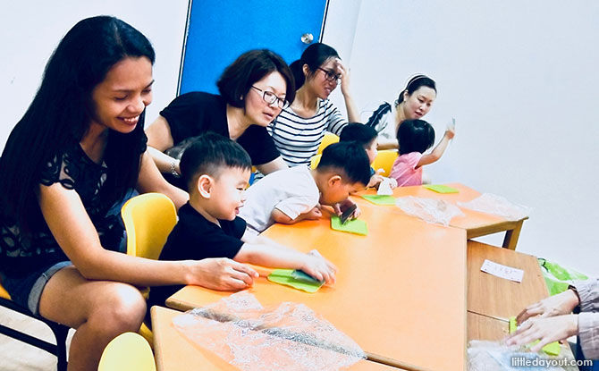 Every activity was preceded by an introduction or explanation by the teacher; the children would then get busy, with some assistance from their caregiver. The classroom activities focus largely on developing a child’s fine motor skills and include exercises such as using a marker pen to trace out numbers.