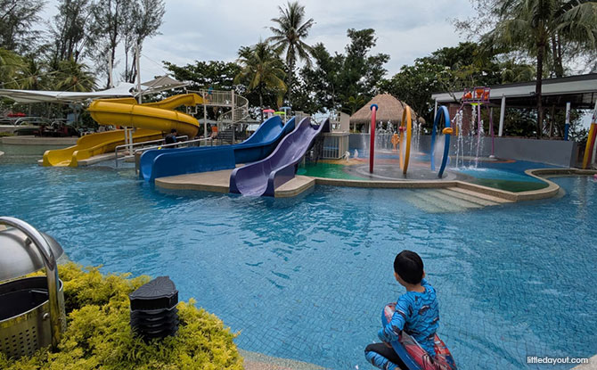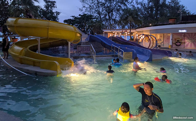 The highlight is of course the three water slides – one that spirals and two that run parallel to each other. These get really popular during peak periods. Even adults can have fun on them which is ideal for family bonding since some water slides prohibit adult access.