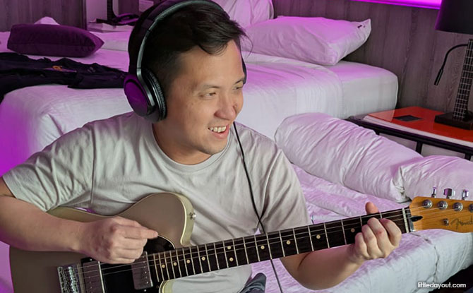 Want a chance to play on an electric guitar? Guests at Hard Rock Hotel Penang can borrow a Fender guitar during their stay and try jamming in their own rooms. My husband the guitarist was thrilled to try a telecaster. He even taught the kids some chords and rock tunes.