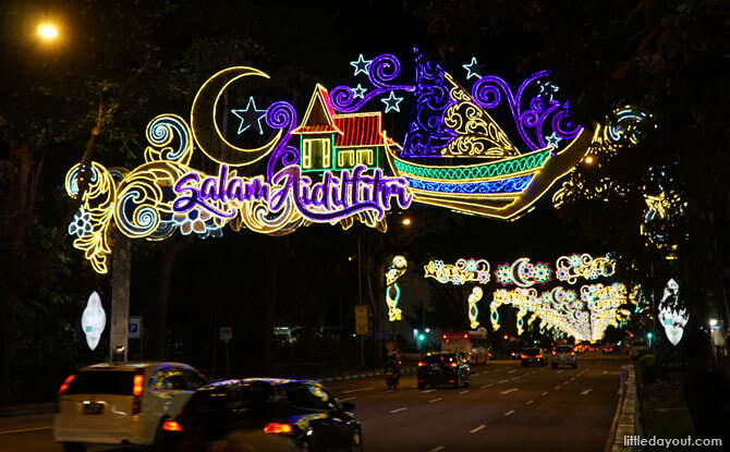 Themed “Celebrating our kampung spirit”, the Hari Raya Light Up 2018 takes place from 12 May to 30 June 2018 at Geylang Serai. It features 2.25 km of light installations which incorporate various icons symbolic of Malay tradition and history.
