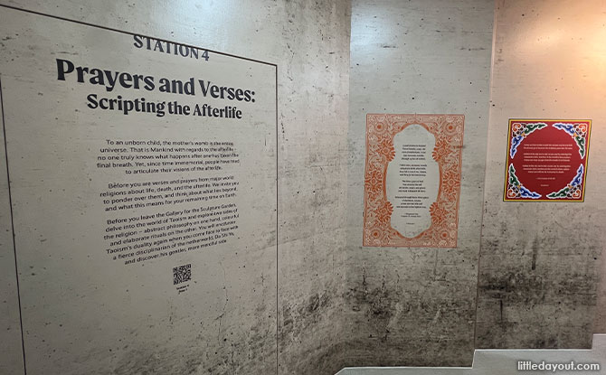 Watch a well presented and insightful video that sets the premise of discussing the usual taboo topic of life and death. Visitors are encouraged to watch the video and follow the route to all 10 stations. We enjoyed the meaningful facts brought up in the short video and highly recommend starting the journey with this station.