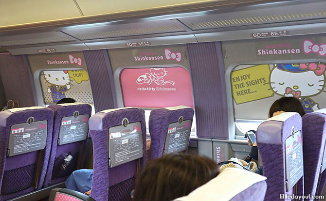 The one-way journey between Shin-Osaka and Hakata takes about 4.5 hours on the Hello Kitty Shinkansen bullet train. The Hello Kitty train is a regular one so all you need is a regular bullet train ticket with non-reserved tickets which can be purchased from the JR-West Ticket Office on the day of your ride.