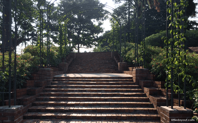 In 1995, a group of former prisoners-of-war recounted the story of how they were forced to make bricks at Changi. Some of these bricks were then used to construct a set of steps leading to the Plant House at the Singapore Botanic Gardens. At that time, arrows were commonly used at that time to identify Government property and, as an act of defiance, the PoWs marked arrows on the bricks. The staircase and their red, marked bricks can still be found at the Gardens today.