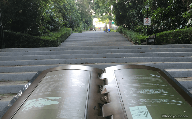 Now more likely to be climbed by exercising joggers, the broad steps at the top of Bukit Batok Nature Reserve once led to a shrine built by the Japanese to honour their comrades killed in the Battle of Singapore. The Japanese memorial at the top of the hill was a 12-metre tall wooden mast capped in bronze. Behind it, Allied POWs were allowed to build a memorial to their own fallen in the form of a wooden cross. Both memorials were torn down by the Japanese at the end of the war.