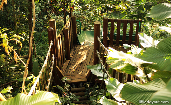A less well-known secret about Hindhede Nature Park is that there used to be an adventure playground at the park – something like what you can now find at Jubilee Park and Admiralty Park. This was still accessible up to 2013, years before the slides at Jubilee Park and Admiralty Park opened. Two slides used to lead off from the main children’s playground downhill along the terrain.
