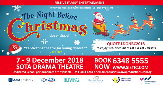 Little Day Out readers get an extra bonus “gift”. Enjoy a 10% discount for The Night Before Christmas tickets with special code LDONBC2018 when booking through SISTIC.