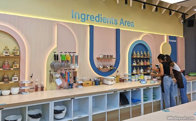 The pastel-coloured workstations, equipment, and shelves provided a soothing and relaxing space for us to start our baking adventure.