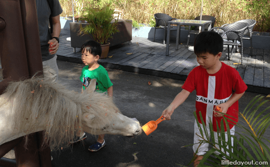 The pony booth opened and we proceeded to get our coupons at $10 a child for three rounds on the grass track. The friendly female staff informed us that the booth only opens on weekends, from 10.00 am to 12.00 nn, and from 2.00 pm to 6.00 pm. She also mentioned to call and check if they are open before coming by, giving me the impression that their opening hours are subjected to change.