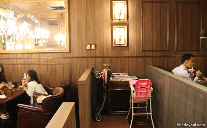 Fret not if you come in with a Mercedes Benz sized stroller. The aisles at Hoshino Coffee United Square are much wider to faciliate your movement and the easy placement of baby chairs.
