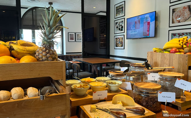 There was an impressive accompanying semi-buffet counter serving an array of breads, cheeses, spreads, cereals, fresh fruits, salads, pastries, Asian fare and even full dairy options from soy, oat, semi-skimmed to low fat or full cream milk.